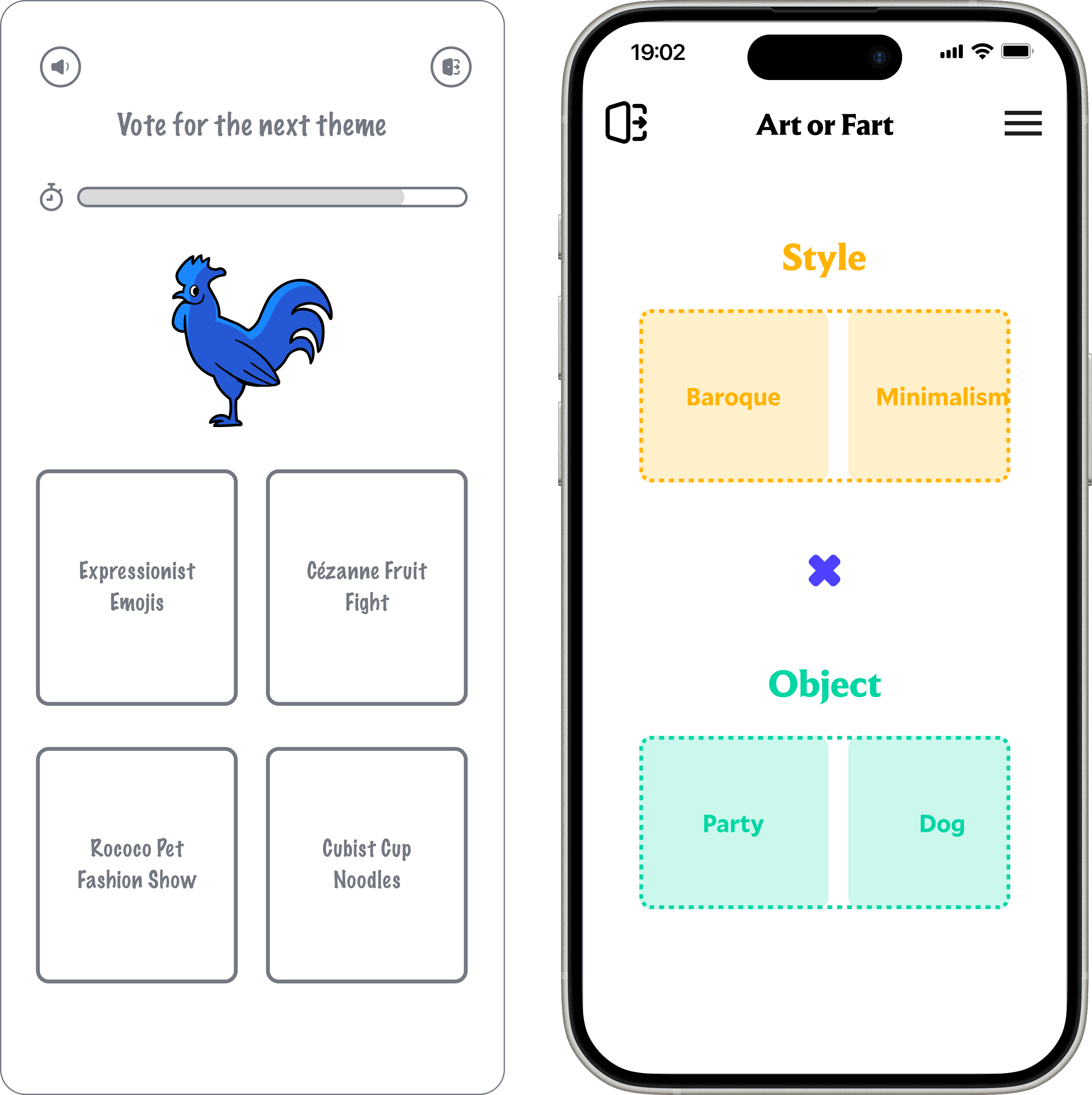 Initially, we thought it would be fun for users to vote on a theme, but we soon encountered several issues. For example, how would we handle a tie? And would users be able to understand the style–object combinations presented in this format?