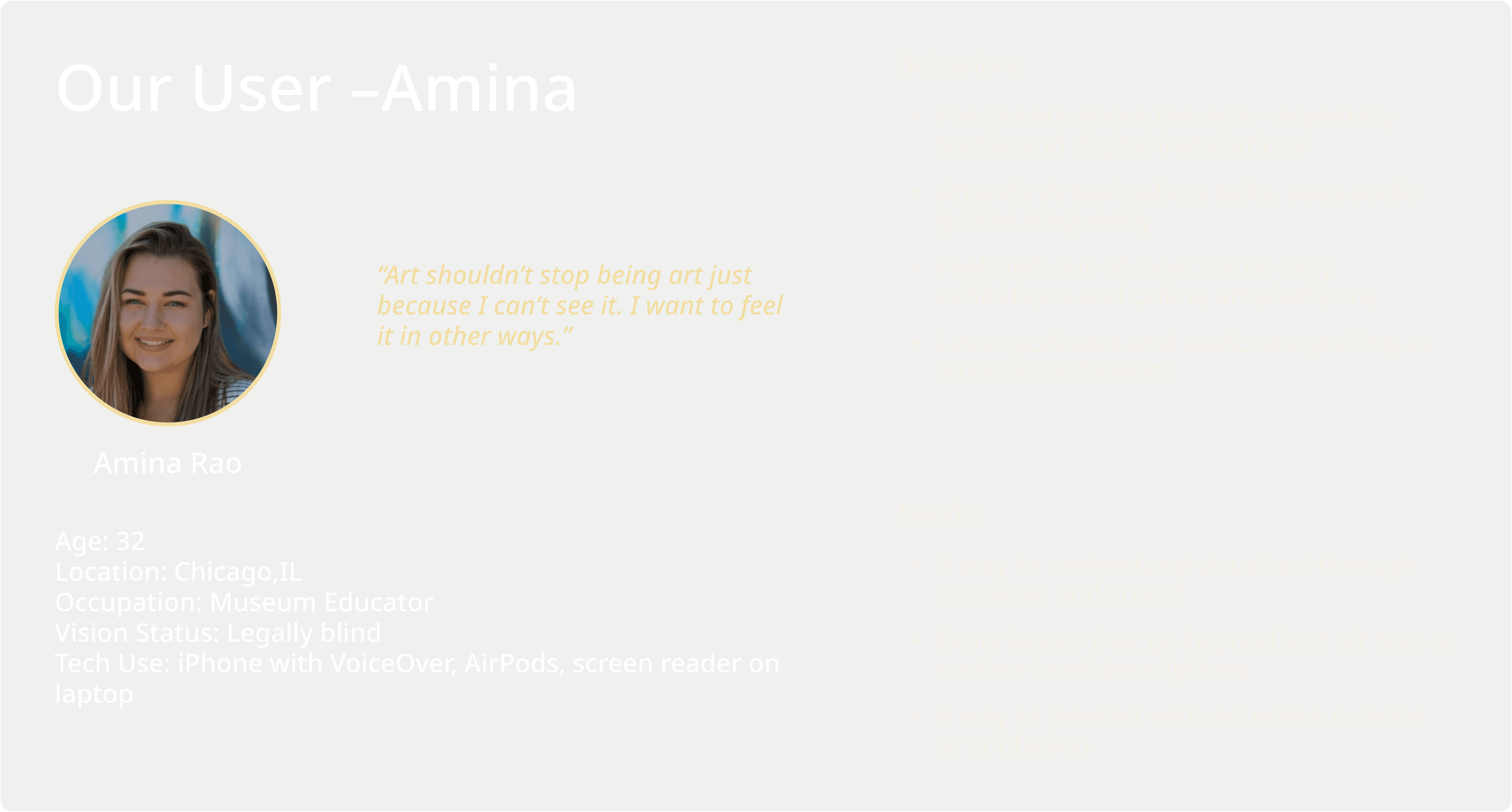 This project was a unique opportunity for me to design within a museum context. While I truly enjoyed creating a multisensory experience, the process also revealed areas for improvement that I look forward to exploring in future projects.