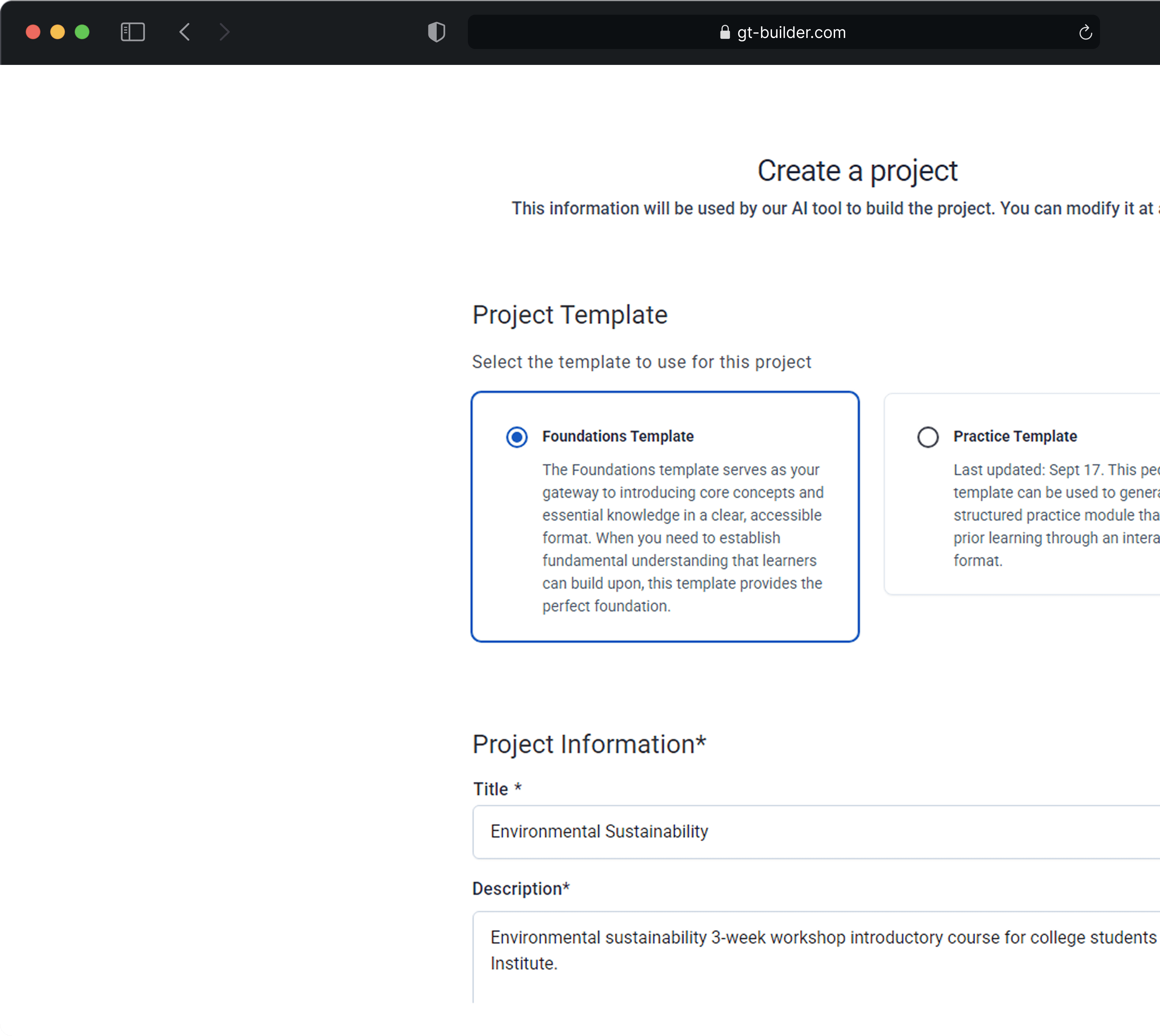 6/8 participants said they weren’t sure what the difference was between the foundation and practice templates. Because they didn’t understand how each option would affect the course, most people guessed and chose the one that felt “safer,” which made them uncertain about whether they had made the right decision.